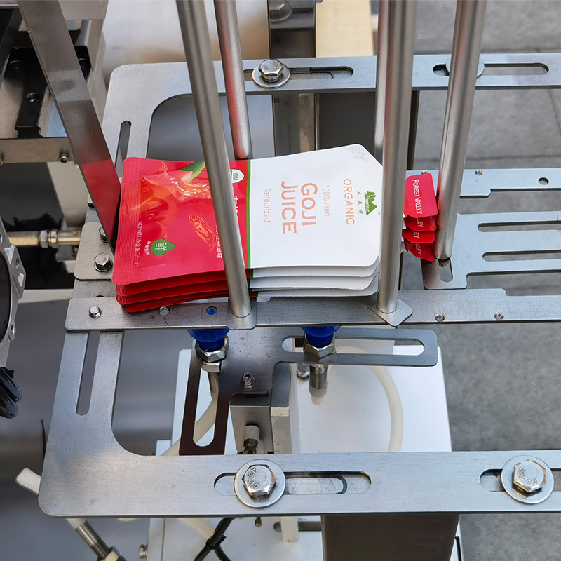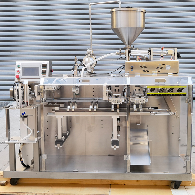 水平式液體包裝機的工作方式屬于高強度的自動化生產工序,首先,將預制袋整齊的放置在供袋處,供袋裝置通過先進的機械結構與智能控制系統,自動抓取預制袋,并將其準確輸送至充填工位,在這個工作程序當中,自動化預制袋包裝機可自動對包裝袋進行抓取與輸送工作,在經過精確的控制定量原理的形成當中,能夠實現對流動性強的液體物料通過電子控制系統的配合,保證包裝袋的物料一致性。水平式液體包裝機通過實時監測充填重量,確保每袋產品的重量誤差控制在極小范圍內。自動化預制袋包裝機在經過充填結束后,將會自動進入封口工位,運用熱封技術能夠精確控制加熱溫度、時間和壓力,確保封口質量穩定可靠,防止液體泄漏。