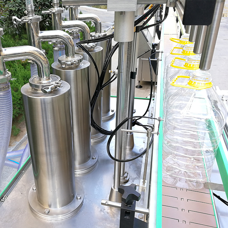 智能液體灌裝機主要由儲藏料斗、輸送管道、灌裝頭、液位控制器、輸送帶、防滴漏裝置等設備組成。食用油自動化灌裝機的整個工作過程全部處于智能操作條件下完成,它主要由PLC控制器配合彩色人機電腦顯示屏,正式工作前,工作人員應當提前將液體備至在儲料斗內,料斗中的液位高度控制著設備的灌裝速度和液體水平,所以在進入灌裝工作前,需要提前將灌裝規格設置在顯示屏幕當中,啟動機器后,液體將通過輸送管道被傳輸至灌裝頭,灌裝頭將會按照預設的灌裝量將液體精準的充填至容器當中,灌裝與預設規格一致的容量后,智能液體灌裝機會帶動產品進入下一個生產工序。